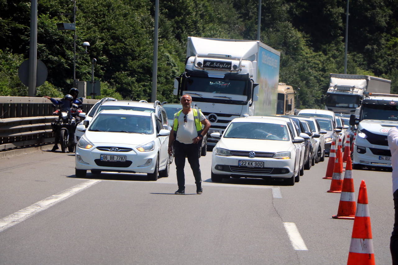 Anadolu Otoyolu'nun İstanbul yönü bir süreliğine ulaşıma kapandı. Uzun araç kuyrukları oluşturken, ekipler yolu açmak için çalışma başlattı.