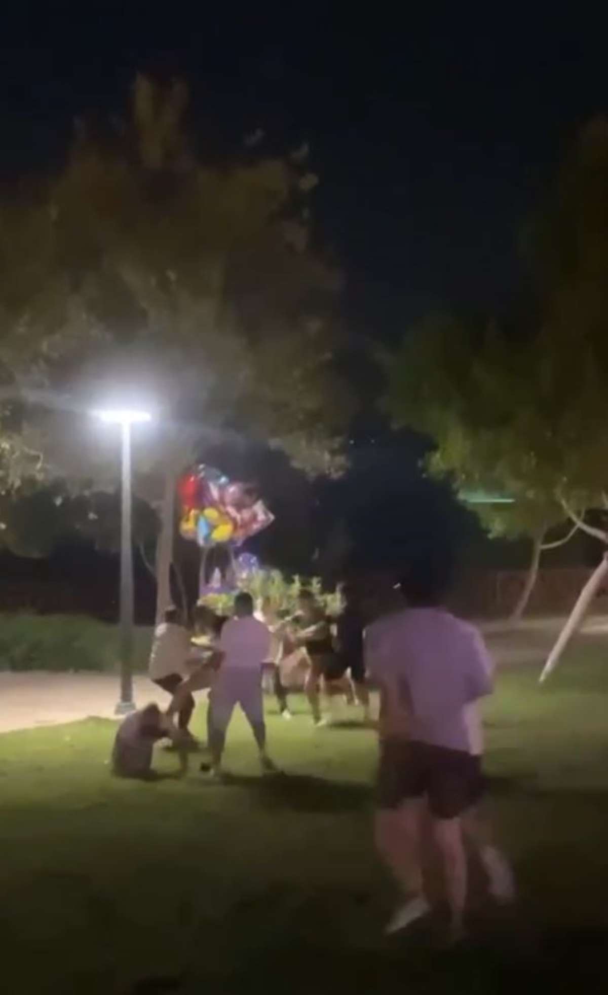 Cep telefonu kameralarına yansıyan görüntülerde gençlerden biri aldığı darbe sonucu yerde yığıldı. Tam bu sırada karşı taraftan bir genç ise yerdeki kişinin yüzüne sert bir şekilde tekme attı.