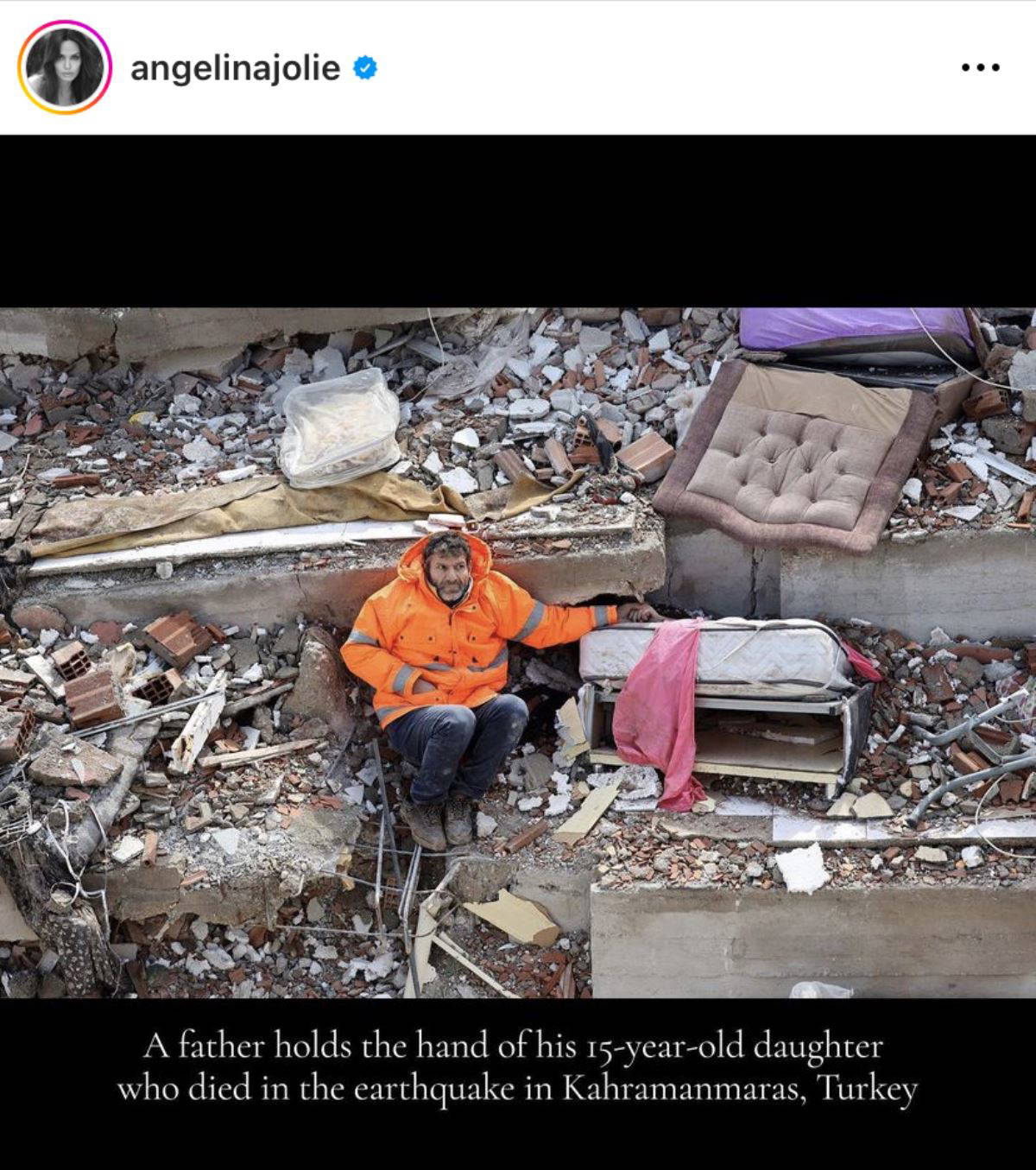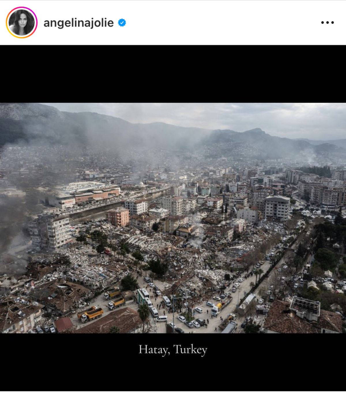 Jolie, Instagram hesabından depremin yıkıcılığı gözler önüne seren görüntüleri paylaşarak şu notu düştü: