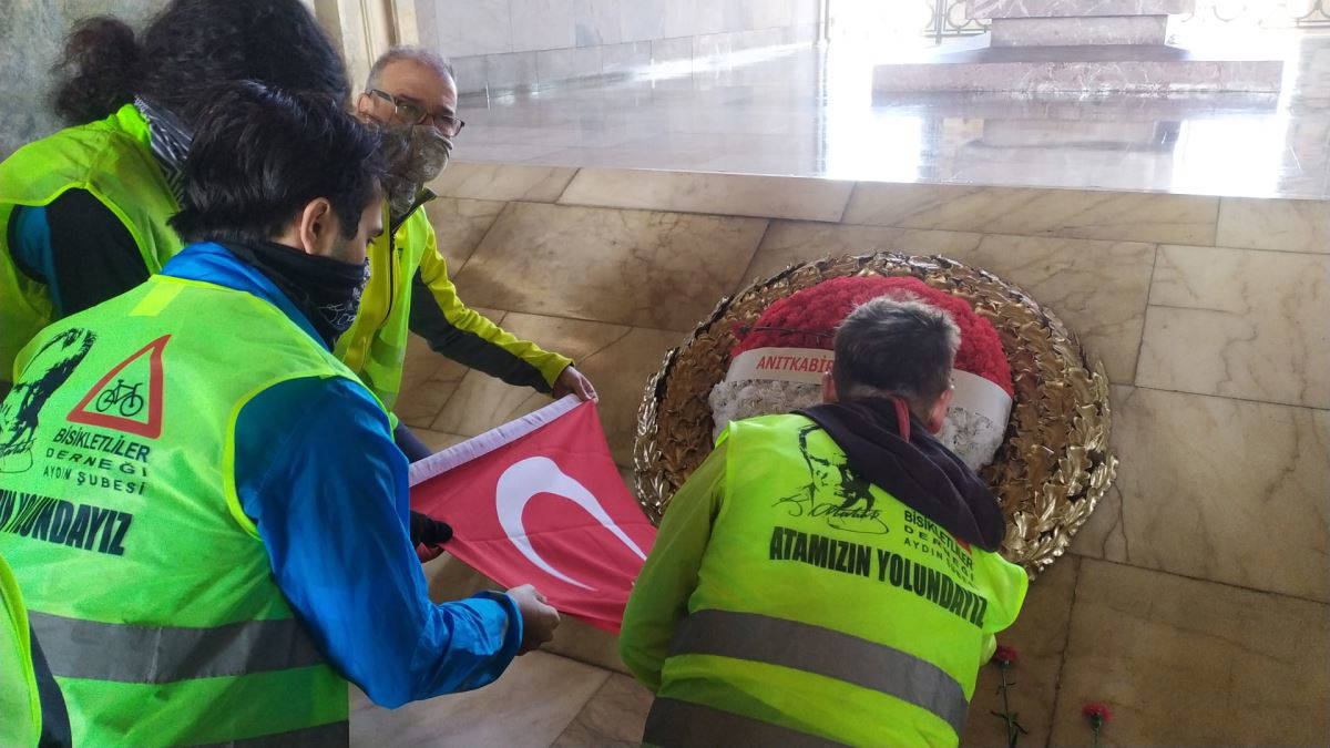 Cumhuriyet'in kurucusu Gazi Mustafa Kemal Atatürk’ü anmak için bisikletleri ile yola çıkan yurttaşlar, Aydın’ı temsilen bir Türk Bayrağı ve bir avuç toprağı alarak yola çıktılar. Bisikletliler Derneği Aydın Şubesi’nin düzenlediği “Ata’mızın Yolundayız” etkinliği, 19 bisikletlinin 630 km yol alması ile başarıyla gerçekleştirildi. Bisikletlilerin temini ise Aydın Büyükşehir Belediyesi’nce yapıldı. Büyükşehir Belediyesi’nin görevlendirdiği bir otobüs ve bir pikap yolculuk boyunca bisikletlilere eşlik etti. Etkinliğe destek olmaktan mutluluk duyduklarını belirten Aydın Büyükşehir Belediyesi Başkanı Özlem Çerçioğlu, “Ata’mızın huzuruna çıkmak için önemli olan o yolun uzunluğu ya da kısalığı değil, hissettirdiği duygulardır. Arkadaşlar ne mutlu ki bunu başardılar ve sağlıklı bir şekilde tamamladılar. Ata’mızın huzuruna teslim edilen Türk Bayrağı ve Aydın toprağı için bisikletlilere teşekkür ederiz. Desteğimiz onlarla olmaya devam edecek.” dedi.