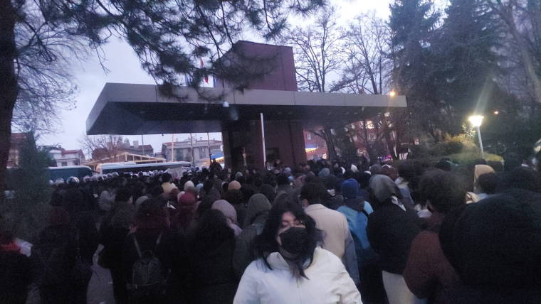 Öğrenciler, yerleşkenin giriş kapısından Güneş Meydanı’na doğru yürümeye başladı. Öğrenciler, yerleşkenin giriş kapısından Güneş Meydanı’na doğru yürümeye başladı. Öğrenciler yürüyüş sırasında “Üniversite ayakta iradesine sahip çıkıyor” pankartı taşıdı.