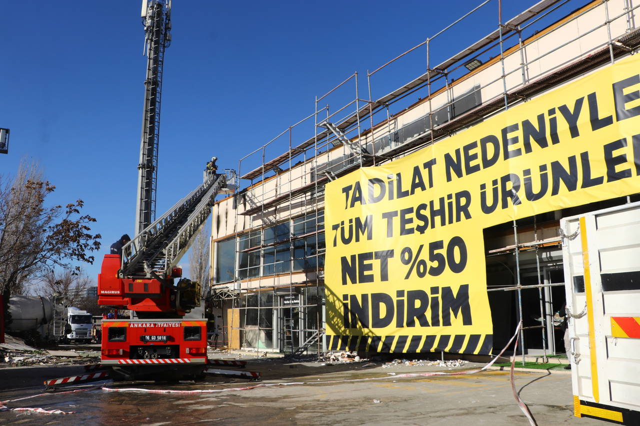 Yenimahalle ilçesi Fatih Sultan Mehmet Bulvarı'ndaki 2 katlı halı mağazasının çatısında, iddiaya göre, tadilat sırasında kaynak makinesinden kıvılcım sıçraması sonucu yangın çıktı. Yangının büyümesiyle itfaiye ekiplerine haber verildi.