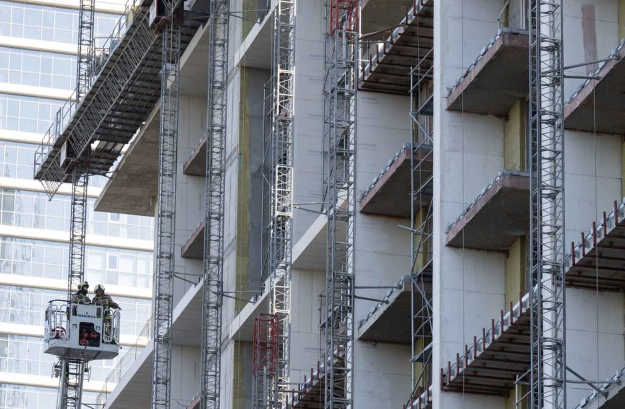 Ankara Büyükşehir Belediyesi binasının yanındaki sitenin inşaat halindeki 12 katlı bloklarından birinin çatısında bulunan kalıp ve yalıtım malzemeleri henüz belirlenemeyen nedenle yanmaya başladı.