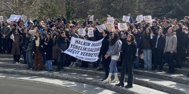Hacettepe Üniversitesi öğrencileri, İstanbul Büyükşehir Belediyesi'ne yönelik başlatılan soruşturma sonucu Ekrem İmamoğlu'nun da aralarında bulunduğu 106 kişinin gözaltına alınmasını protesto dün (19 Mart) Beytepe Yerleşkesinde düzenlenen yürüyüşle protesto etmişlerdi.