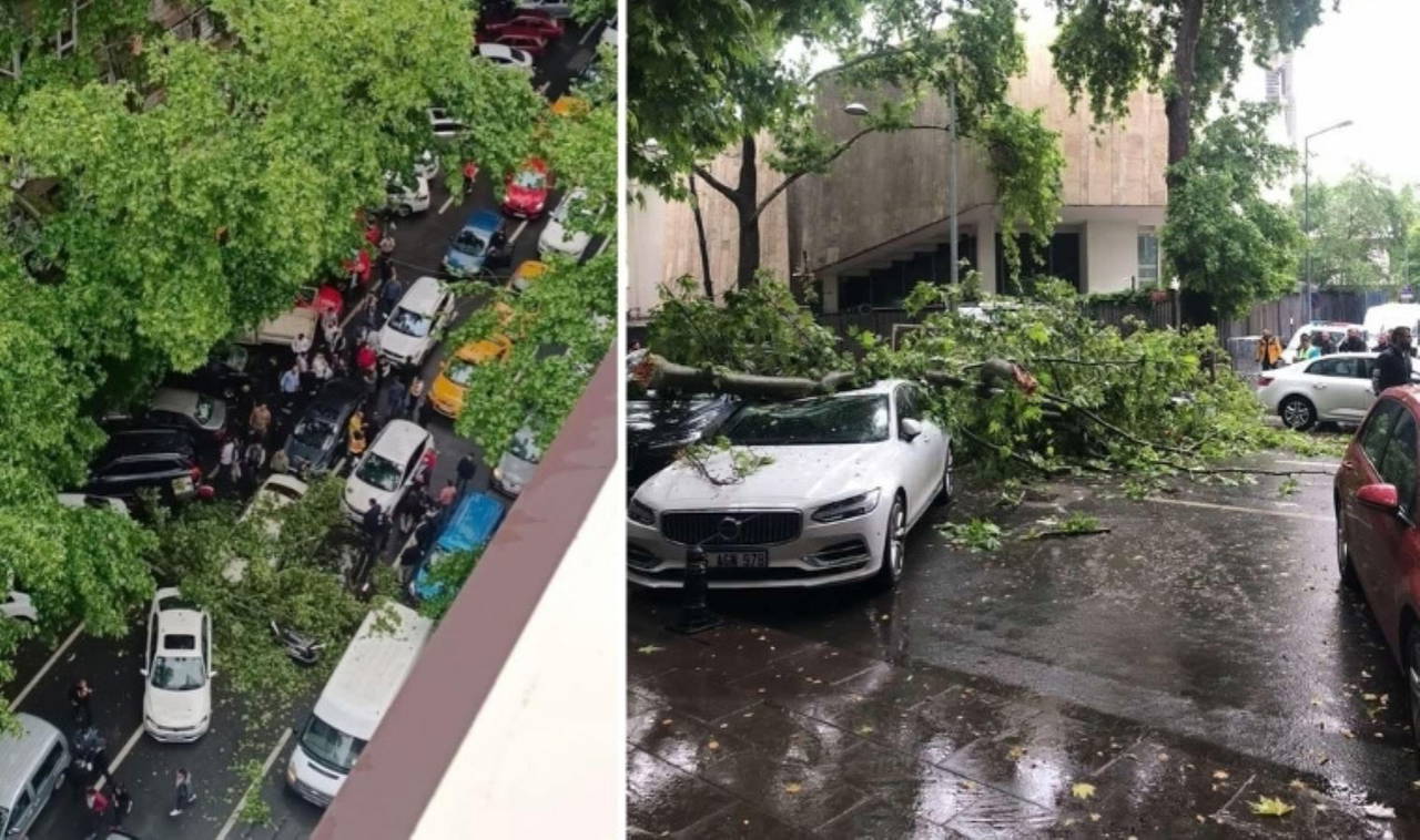 Çankaya ilçesi Necatibey Caddesi'nde bulunan bir ağaç, şiddetli rüzgar nedeniyle yola devrildi. Bu sırada 2’si yoldan geçen, diğeri park halindeki 3 otomobil hasar gördü.