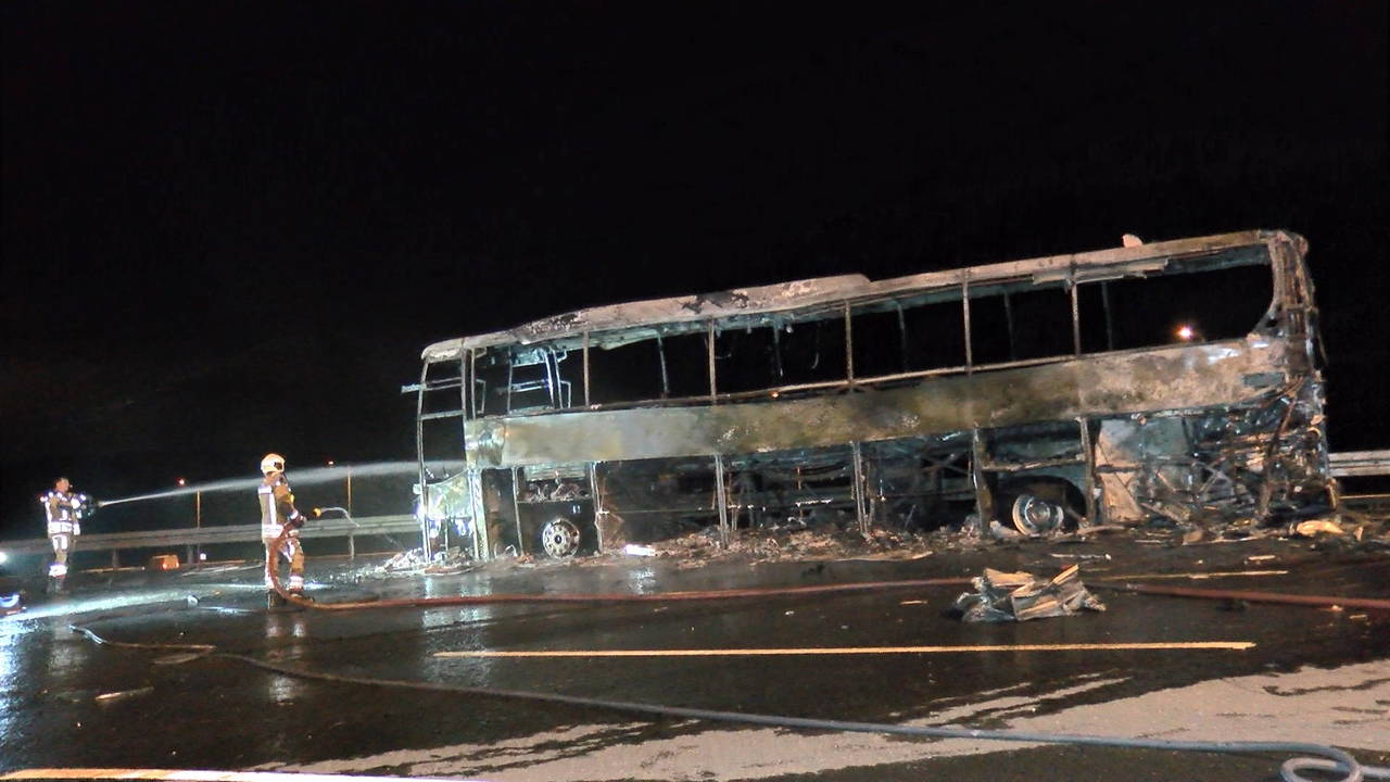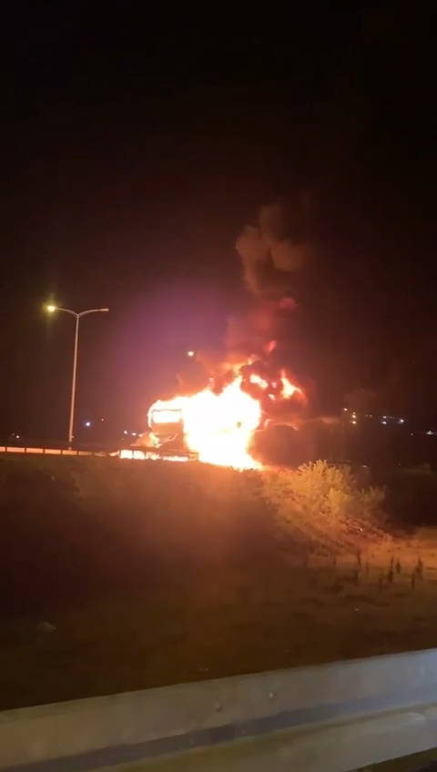 Çarpmanın şiddetiyle otobüs alev alırken, savrularak bariyerlere çarpan TIR'ın ise kupası koptu. Otobüste bulunan yolcular çevredekilerin de yardımıyla araçtan tahliye edilirken, ihbar üzerine kaza yerine çok sayıda sağlık, itfaiye, polis ve jandarma ekipleri sevk edildi.