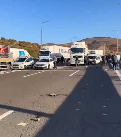 Arkadan gelen 2'si TIR 4 araç da kazaya karıştı. Kazada 6 kişi yaralandı. Yaralılara ilk müdahaleyi çevredekiler yaparken, kaza yerine sağlık, itfaiye ve jandarma ekipleri sevk edildi.