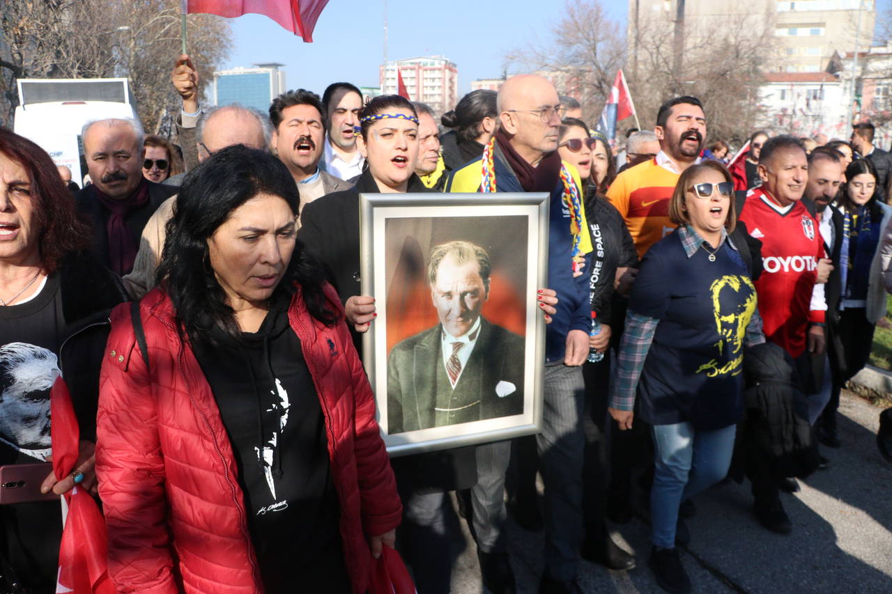 Grup, 'Türkiye laiktir, laik kalacak' ve 'Mustafa Kemal’in askerleriyiz' sloganları attı.