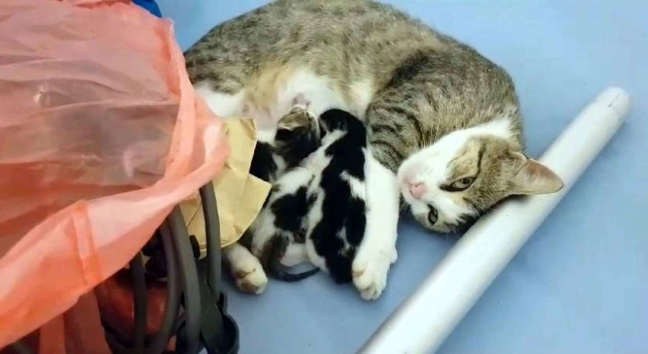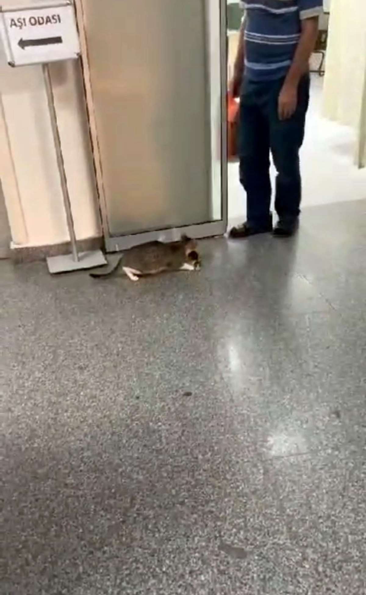 Anne kedi, ağzında taşıdığı yavrusunu hastanenin acil servis bölümüne getirdi. O anlar ise bir yurttaş tarafından cep telefonu ile kaydedildi.