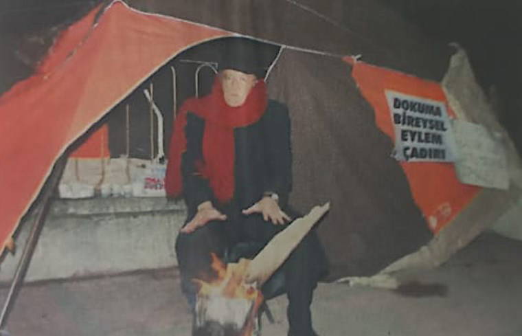 “2008 14 Şubat günü, gazetedekilere haber vermeden sabah 8 buçukta çadırı kurdum, çok ilgi çekti. 1 gün 3 çadır oldu, 3. gün 100 çadır oldu. AKP dışında tüm siyasi partiler, Antalya’nın dinamikleri orasını bir eylem alanına çevirdi. Yurtdışından gelenler oldu. 52 yıl gazetecilik yaptım. Antalya Emniyet Müdürlüğü bünyesinde bu kadar silah, araç, bu kadar korkutucu polis memurlarının olduğunu o zaman görmedim. Dönemin Valisi Alaaddin Yüksel müdahale edilmesine izin vermedi. 4. gün haber geldi. Halk yararına kullanılması için Kepez Belediyesi’ne devrine karar verildi."