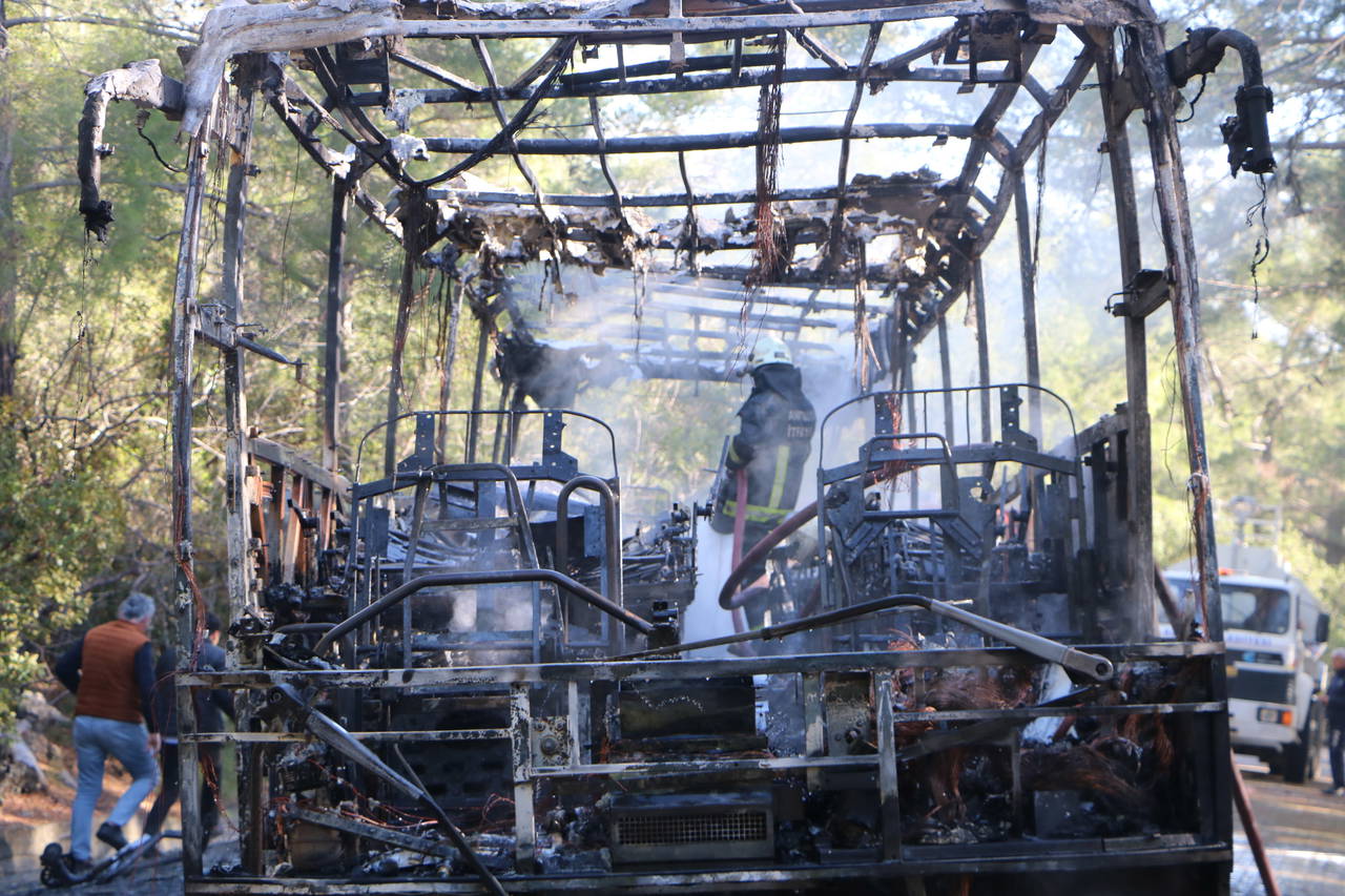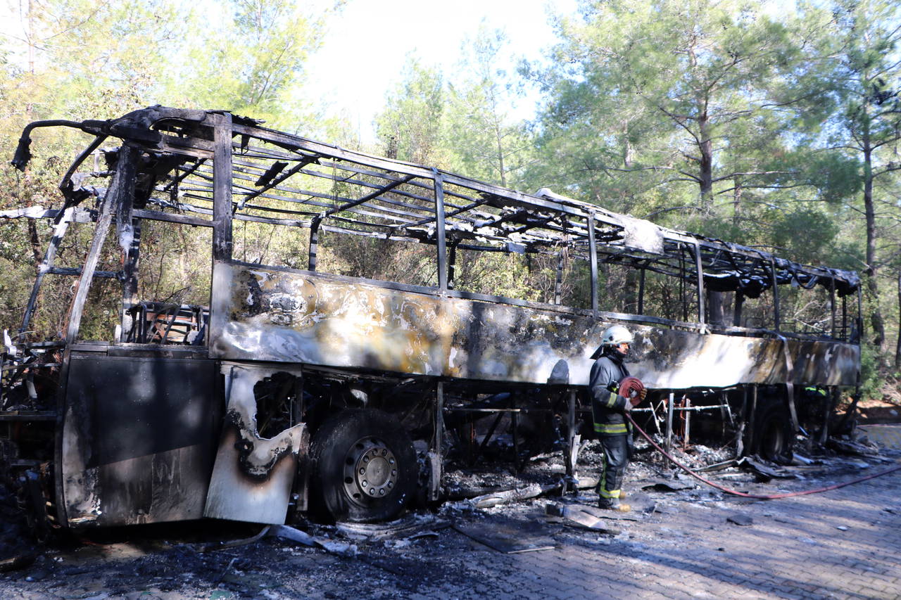 Yangında tur otobüsü kullanılamaz hale gelirken, turistler başka araçla otellerine gitti.