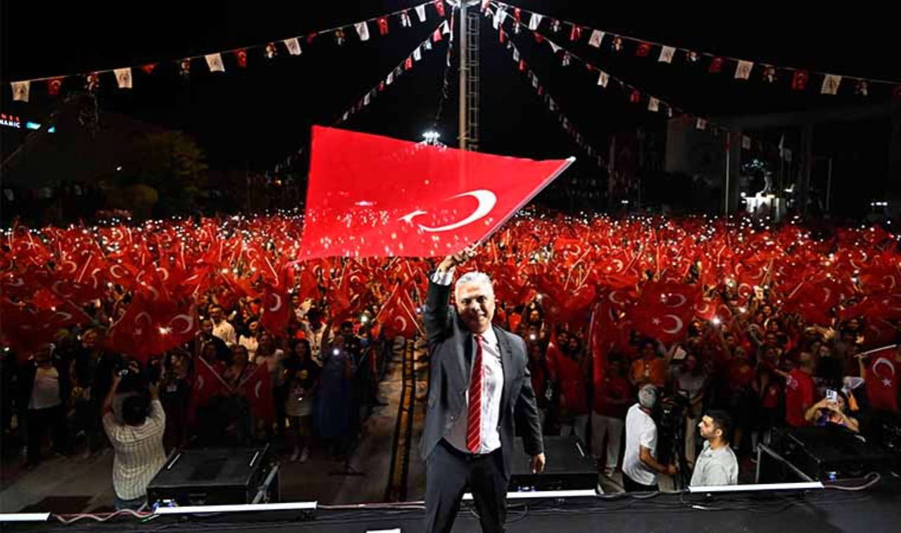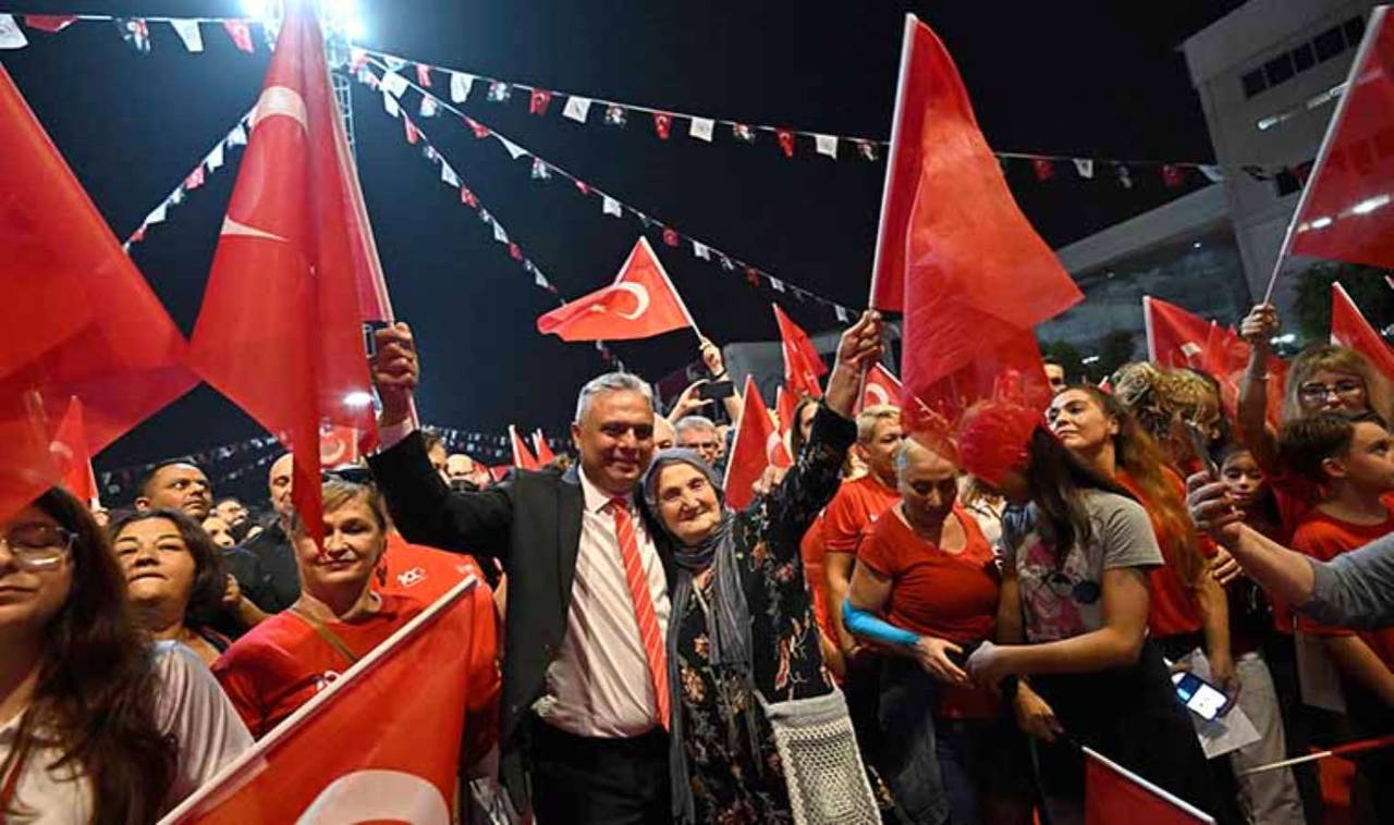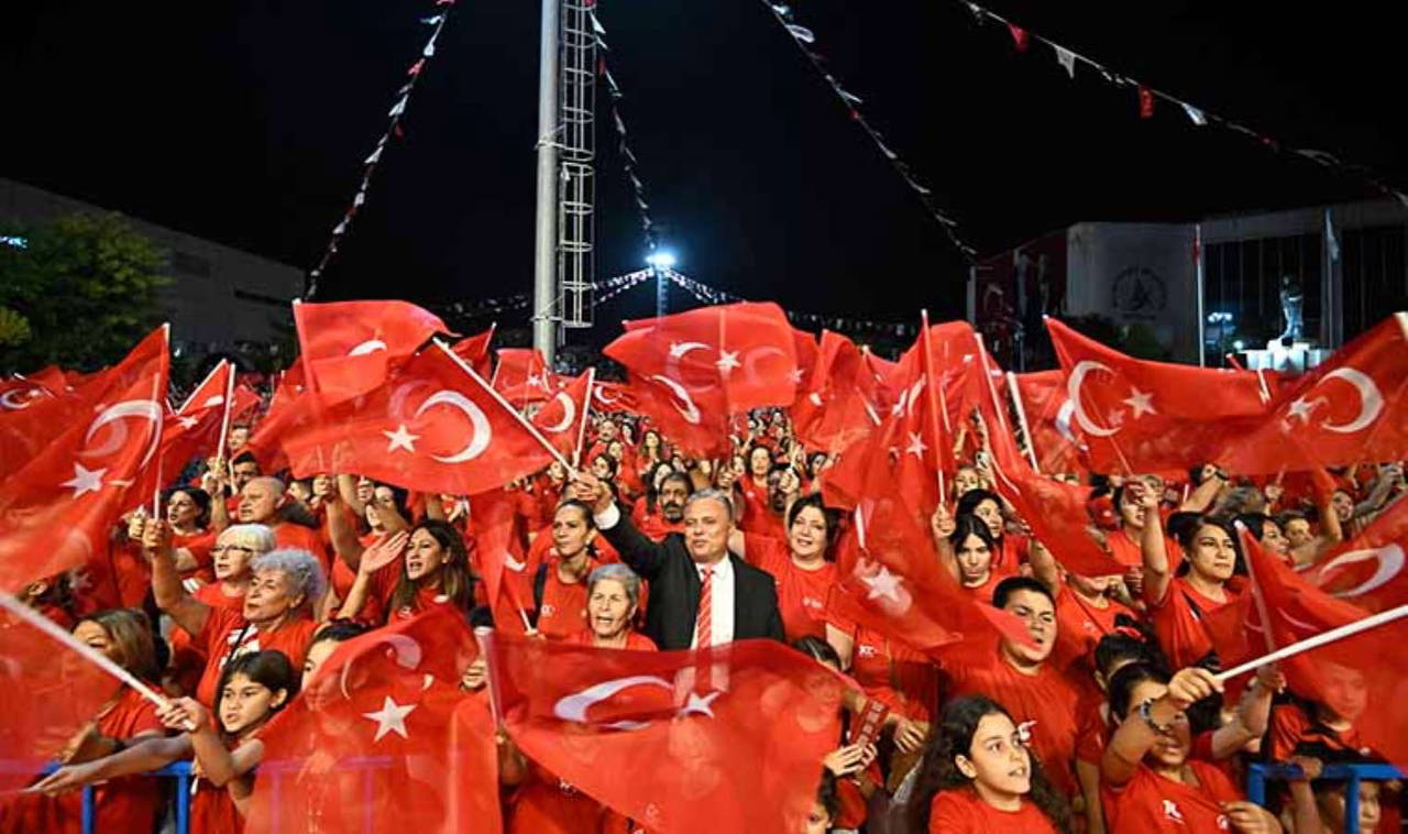 Cumhuriyet Korosu’nun ardından Başkan Uysal, kent meydanını dolduran binleri selamladı.