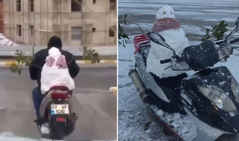 Karapınar daha sonra kardan adamı motosikletin arkasına alarak ilçede şehit turu attı. O anlar ise bir başka sürücü tarafından cep telefonu ile kayda alındı. Kardan adam ile şehir turu yapılması ortaya renkli görüntüler çıkardı.
