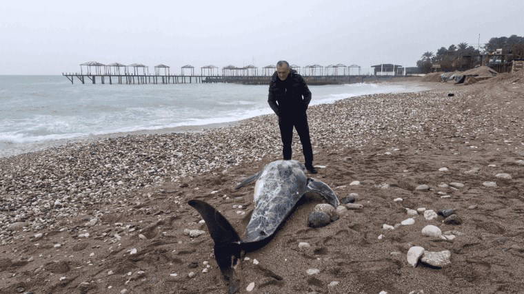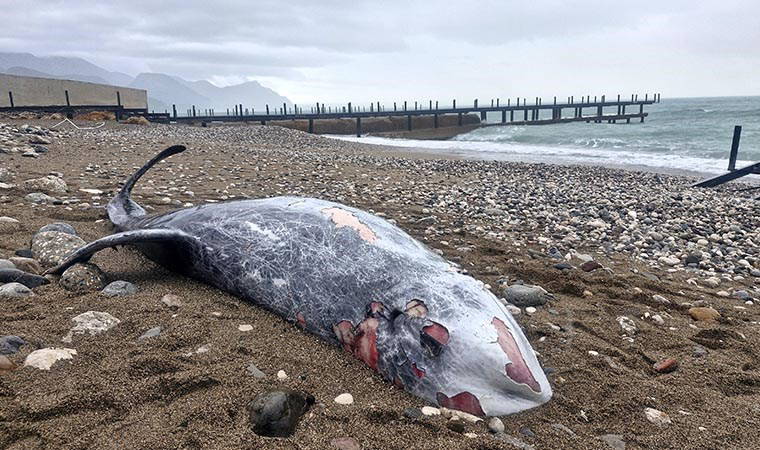 Kemer'e bağlı Beldibi Mahallesi'nde saat 09.00 sularında otel çalışanları tarafından plajda karaya vurmuş ölü yunus bulundu.