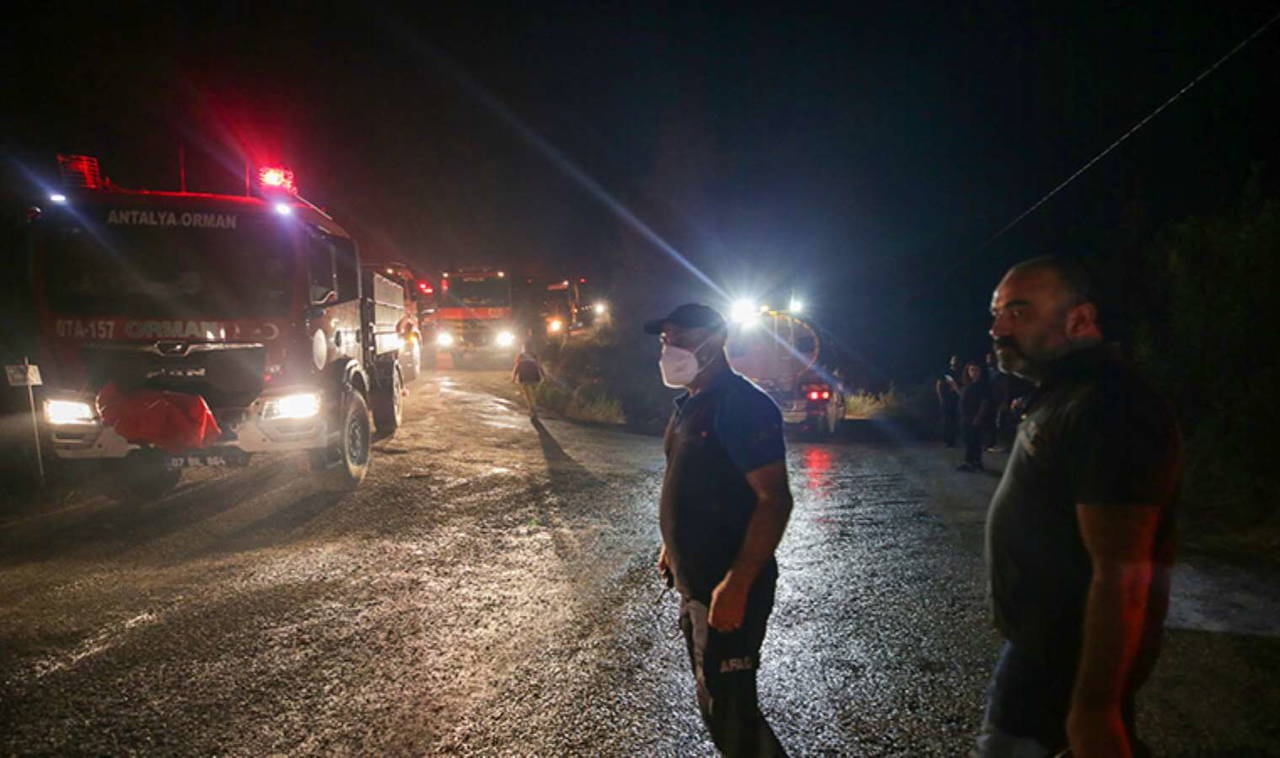 Havanın kararmasıyla hava araçları çalışmalara ara verdi, Orman Bölge Müdürlüğü ve Antalya Büyükşehir Belediyesi itfaiye ekipleri, arazöz, iş makinesi, itfaiye, su tankerleri, kamyon ve dozerlerle bölgede yoğun mücadele veriyor.