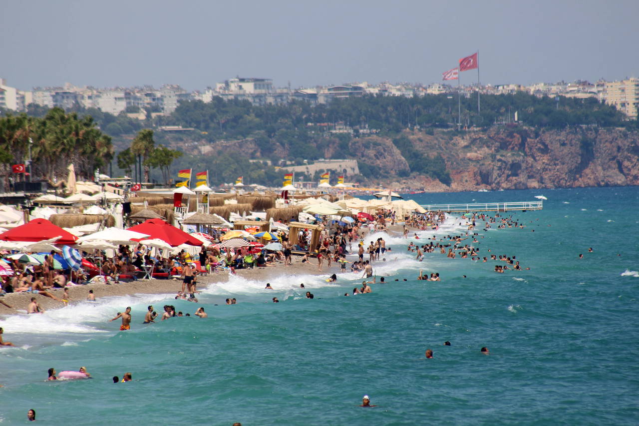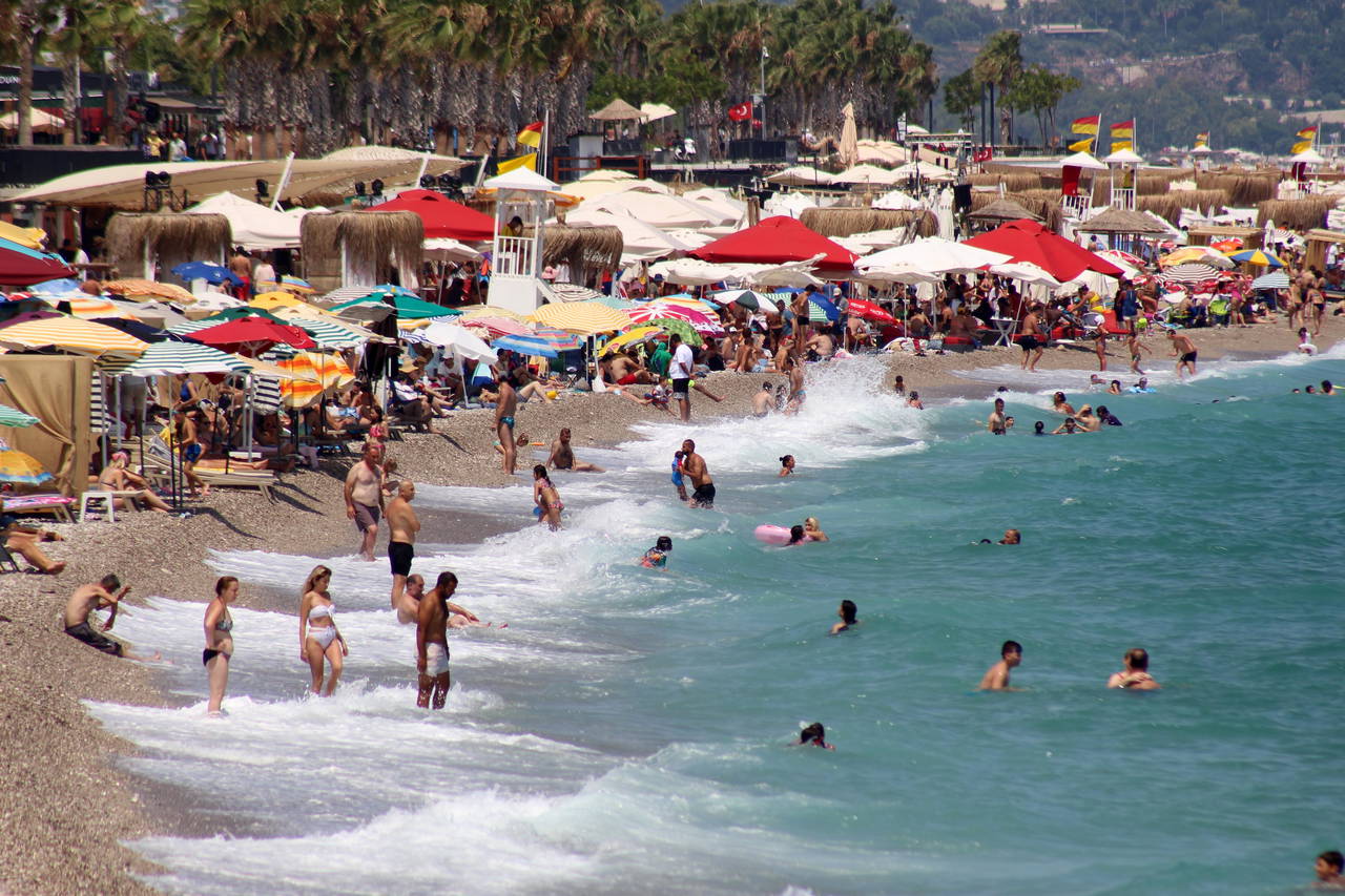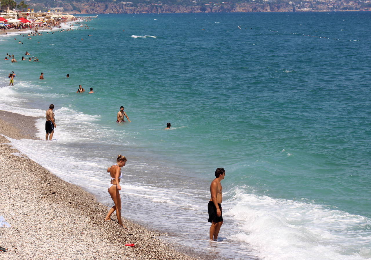 Hava sıcaklığının 28, deniz suyu sıcaklığının 27 derece, nem oranının yüzde 63'lere ulaştığı Antalya'da, dünyaca ünlü Konyaaltı Sahili'ndeki yoğunluk göze çarptı. Dokuz günlük Kurban Bayramı tatilinin bugün sona ermesinin ardından yerli tatilciler memleketlerinin yolunu tuttu.