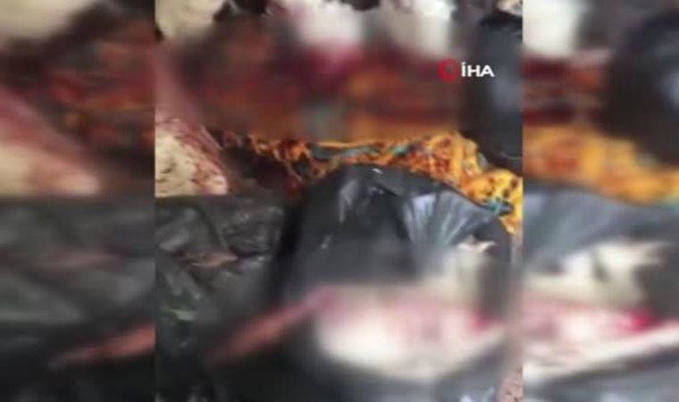 Görüntülerde araç içerisinde kesilen tavuklar, torbalara konularak satılıyor.