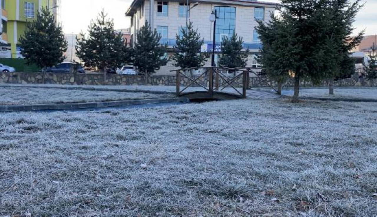 Park halindeki araçların camları buz tuttu, bitkilerde kırağı oluştu.