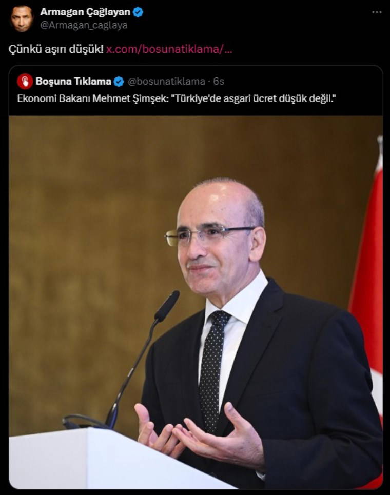 Asgari ücret ile ilgili ifadeleri tepki çeken Şimşek’e bir tepki de televizyon yapımcısı, Armağan Çağlayan’dan geldi.
