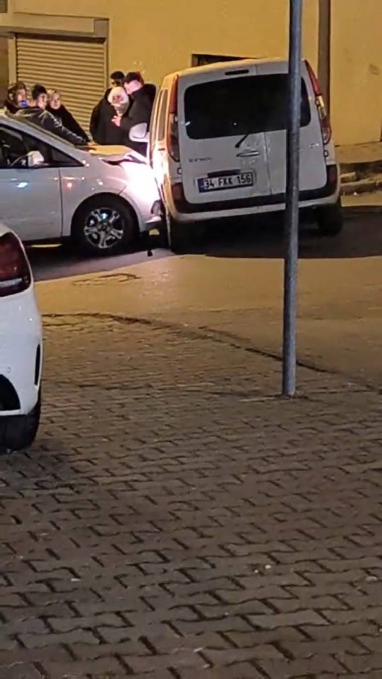 Anadolu Mahallesi'nde gece saatlerinde sokak ayrımında çarpışan hafif ticari araçların sürücüleri kazanın ardından araçlarından inerek konuşmaya başladı.