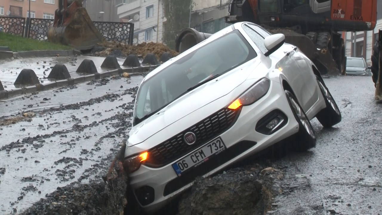 Bir sürücü de sokaktan geçtiği sırada açılan çukuru göremeyerek aracıyla çukurun içine düştü. Sürücünün yara almadan kurtulduğu kazada otomobilde hasar meydana geldi.