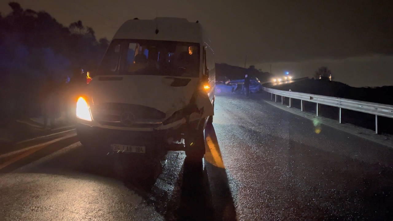 Çarpmanın etkisiyle savrulan otomobil bariyerlere çaparak durabildi. Kazada, servis minibüsündeki 4 işçi yaralandı. Haber verilmesi üzerine olay yerine sağlık ve jandarma ekipleri sevk edildi.