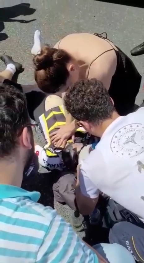 Bu sırada havalimanına giden ve hemşire ve doktor oldukları öğrenilen iki kişi yaralıya bir süre kalp masajı yaptı.