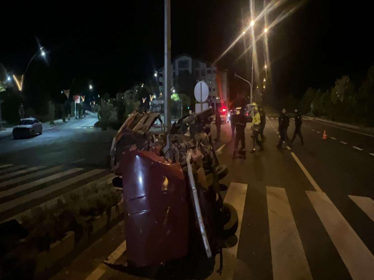 Sürücüsü öğrenilemeyen 38 LA 263 plakalı otomobil aşırı hız nedeniyle orta refüje çarparak takla attı. Çarpmanın etkisiyle savrulan otomobil trafik lambasına çarparak durabildi.