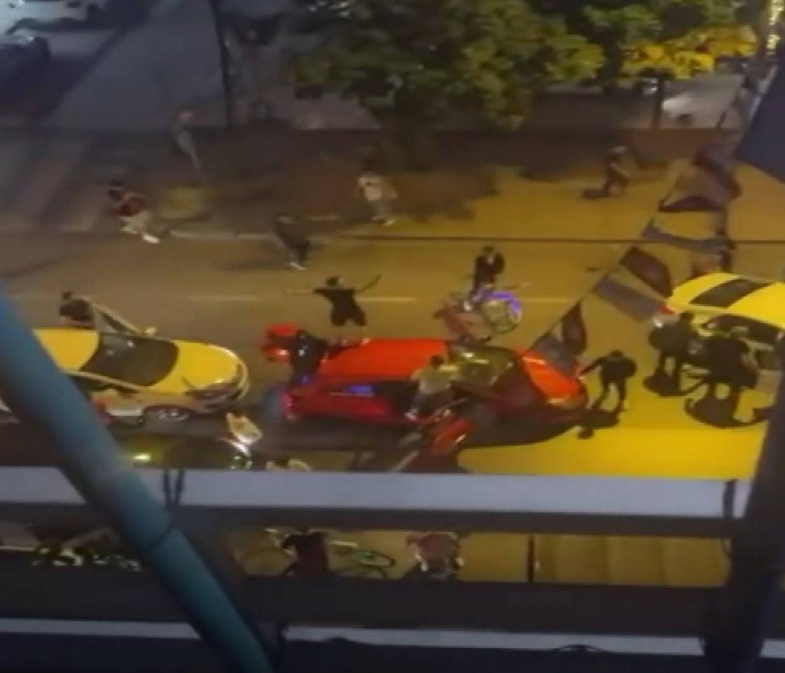 Tartışma kısa sürede kavgaya dönüştü. Kavga eden grupları çevredekiler güçlükle ayırırken, o anlar cep telefonu kamerasıyla kaydedildi.