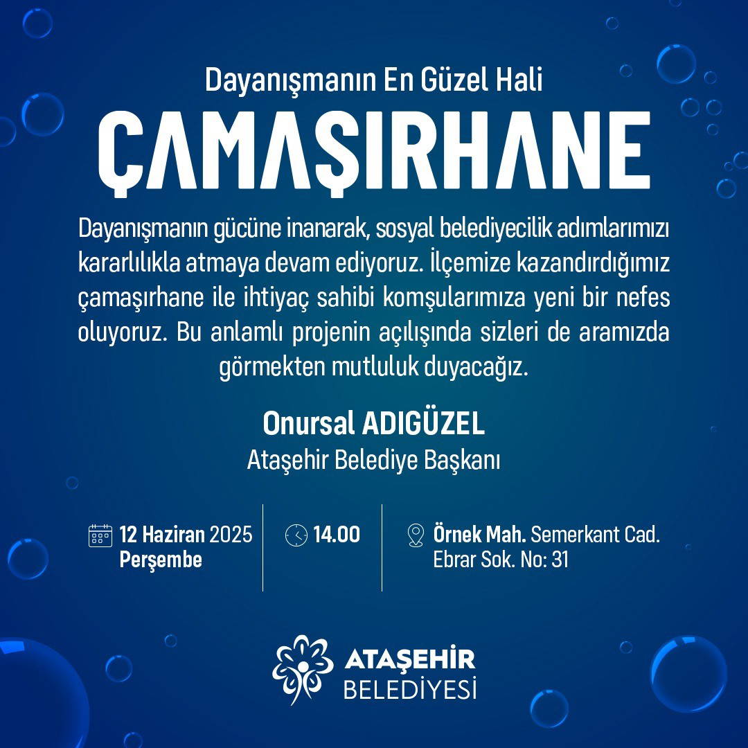 CHP'li Onursal Adıgüzel'in başkanlığını yaptığı Ataşehir Belediyesi, hayata geçirdiği çamaşırhane hizmeti ile ekonomik zorluklar yaşayan bireylerin hijyen ihtiyaçlarını karşılamalarına destek olacak.