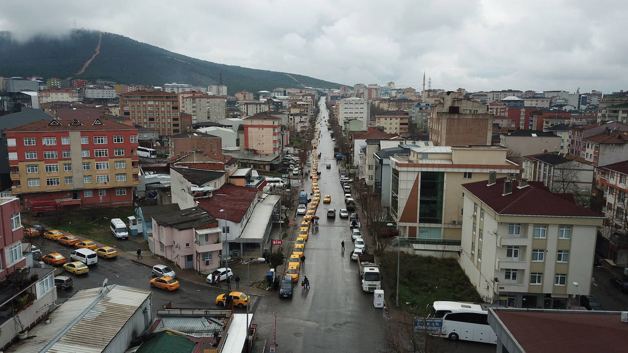 İstanbul'da taksi açılış ücretine yapılan zammın ardından, taksi şoförlerinin yeni tarifeye uygun olarak taksimetrelerini güncellemek için bekleyişleri bugün de devam etti. Taksi sürücüleri, Ataşehir Ferhatpaşa'da bulunan yetkili bir firma önünde metrelerce kuyruk oluşturdu. Yaşanan yoğunluk havadan da görüntülendi.