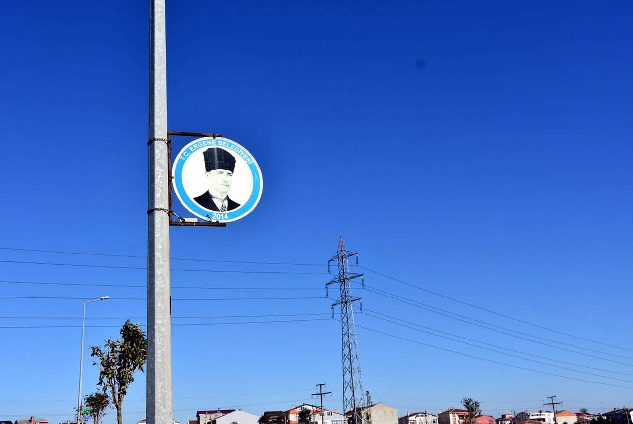 Ergene Belediyesi, ilçenin çeşitli mahallelerindeki aydınlatma direklerine Ulu Önder Mustafa Kemal Atatürk'ün resminin bulunduğu ışıklı tabelalar astı. Sağlık Mahallesi'nin Edirne Caddesi'nde Atatürk'ün resminin bulduğu tabelaya taş atarak kıran kişiyi görenler, polise bildirdi.