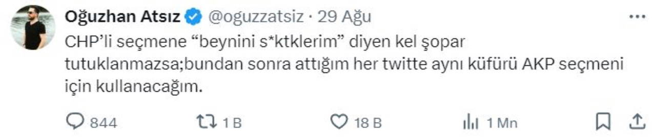 Öte yandan şahsın Atatürk'e ve CHP seçmenine küfür eden Burak Keleş için de X hesabından çağrı yaptığı biliniyor: