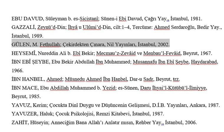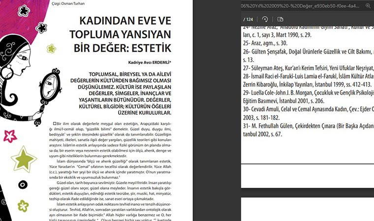 Daha dikkat çekici bir durum ise, "Kadından Eve ve Topluma Yansıyan Bir Değer: Estetik" başlıklı makaleyi yazan Kadriye Avcı Erdemli'nin Fethullah Gülen’in kitabından kaynak kullanması.