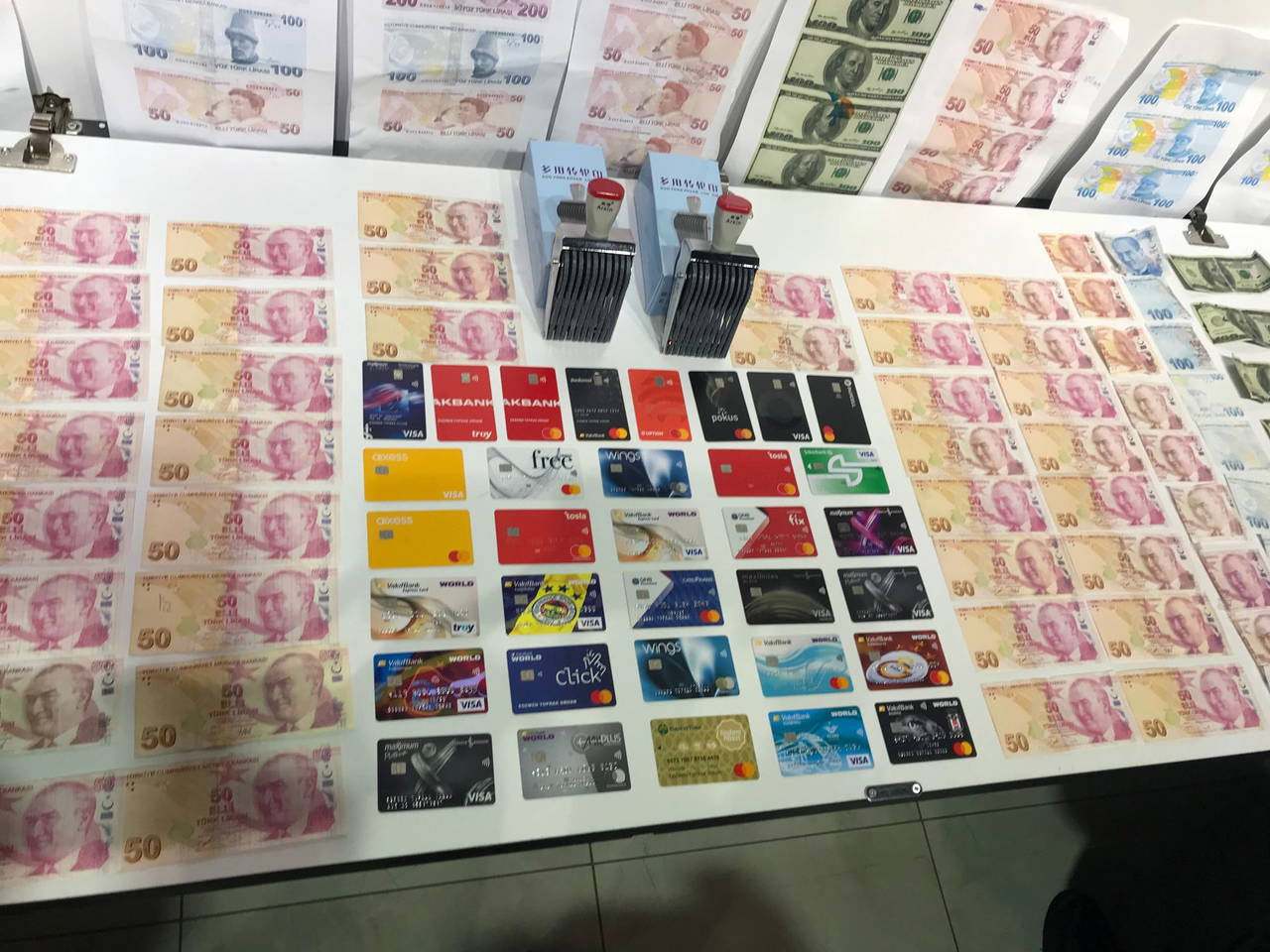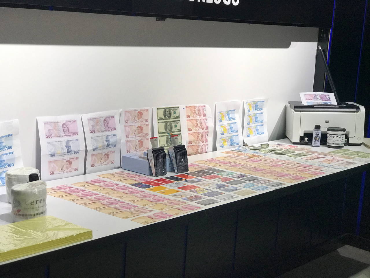 Şüphelinin üzerinde ve adresinde yapılan aramada 2 bin adet sahte 50 TL’lik banknot, 30 adet sahte 100 dolar, çok sayıda kesilmiş sahte para kağıtları, banka ve kredi kartları ile banka dekontları, sahte paraların basımında kullanılan; yazıcı, tarayıcı, boya, sıvı solüsyon, numaratör ve çok sayıda materyal ile basımı yapılmış sahte para kağıtları ele geçirildi.
