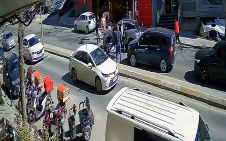 Çarpmanın etkisiyle elindeki poşetler yere düşen kadın yola savruldu. Kadının yardımına çevredekiler koşarken, kazaya neden olan sürücü bir süre yaralı kadının başında bekledi.