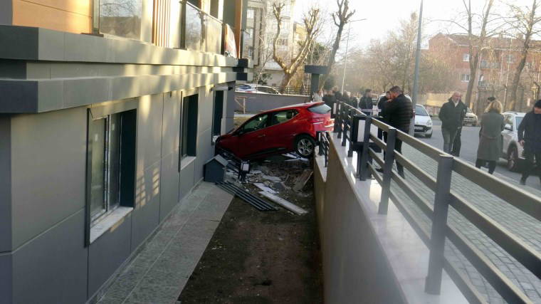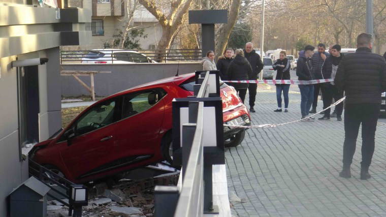 Hızla kaldırıma çıkan otomobil bahçe duvarını aştı. Binanın birinci katında bulunan dairenin duvarına çarparak durabildi. Sürücü ve yanında bulunan eşi kazadan yara almadan kurtulurken, otomobilin çarptığı dairenin duvarında hasar olduğu tespit edildi.