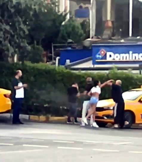 Daha da sinirlenen kadın araya giren diğer taksi şoförüne tokat atmaya başladı. Kadın çevredekilerin araya girmesiyle uzaklaştırıldı. O anlar kameraya yansıdı.