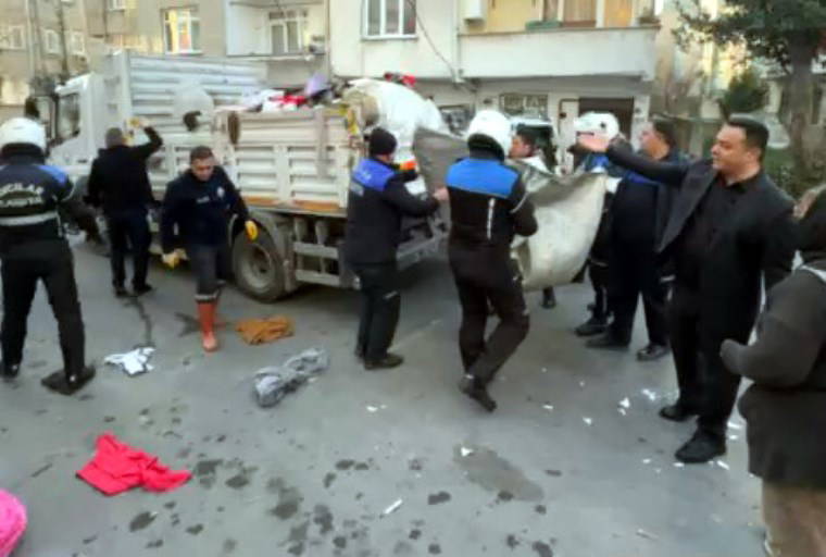 Bir kadın da giden kamyona tırmanarak el konulan kıyafetleri almak istedi. Zabıta ekipleri ise şikayet alındığı için müdahale edildiğini ifade etti. Yaşanan arbede çevredekiler tarafından cep telefonu kamerasıyla görüntülendi.