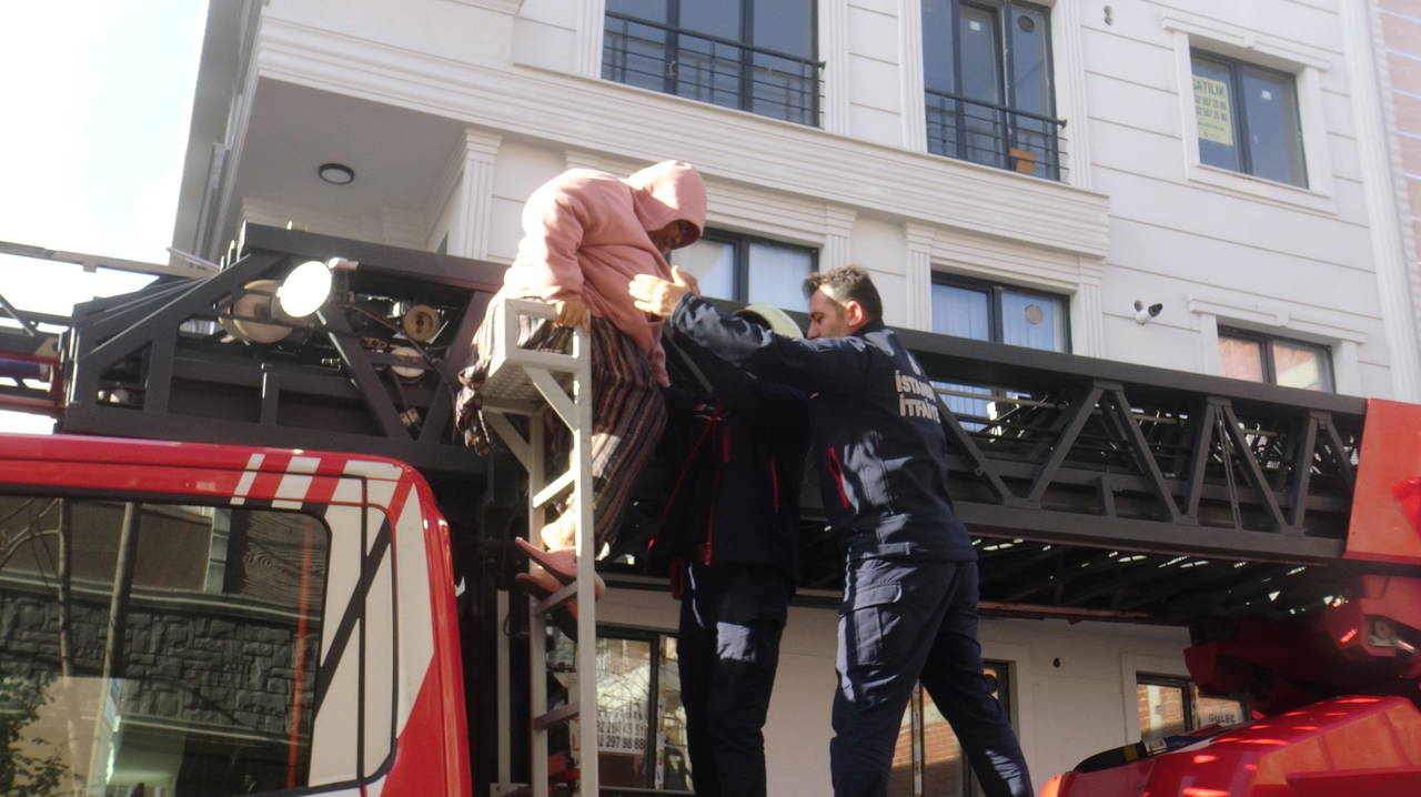 İhbar üzerine itfaiye, sağlık ve polis ekipleri olay yerine sevk edildi. 3 kadın ve 1 çocuk itfaiye ekiplerinin çalışması sonucu üçüncü kattaki balkondan kurtarıldı.