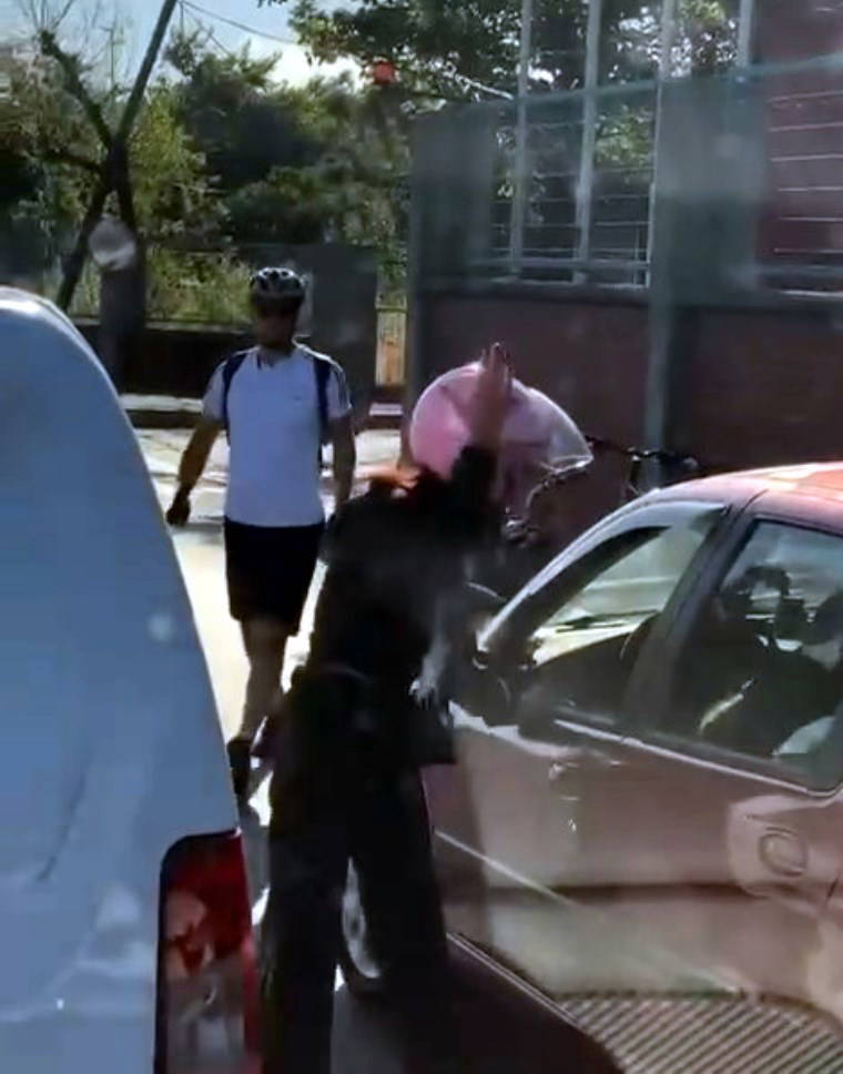 Olaya sinirlenen motosiklet sürücüsü, motosikleti durdurardak otomobilin yanına geldi. "Sana ne?" diye bağıran şahıs bir süre sonra otomobilin camına vurmaya başladı.