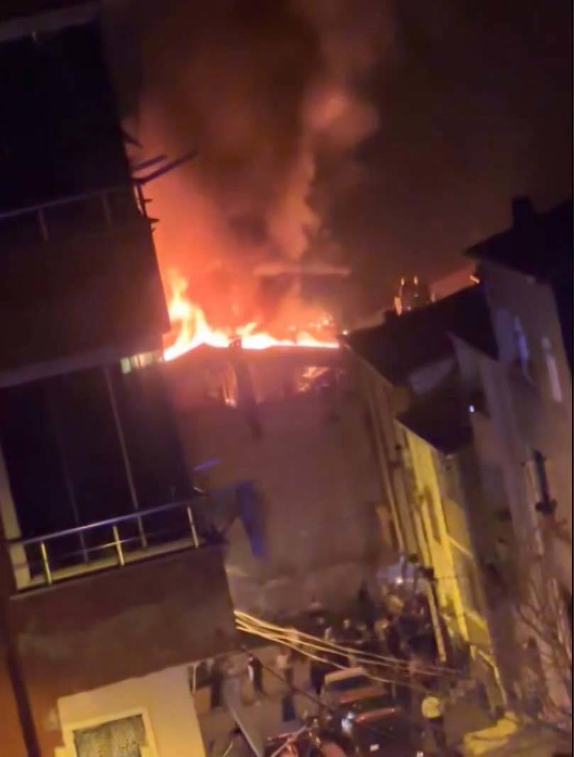 Öte yandan binadan yükselen alevler vatandaşların çektiği cep telefonu görüntülerine yansıdı. Görüntülerde binanın çatısının alev alev yandığı, mahalle sakinlerinin ise panik içerisinde olduğu görülüyor. Görüntülerin devamında ise olay yerine gelen itfaiye ekiplerinin yangına müdahale ettiği görülüyor.