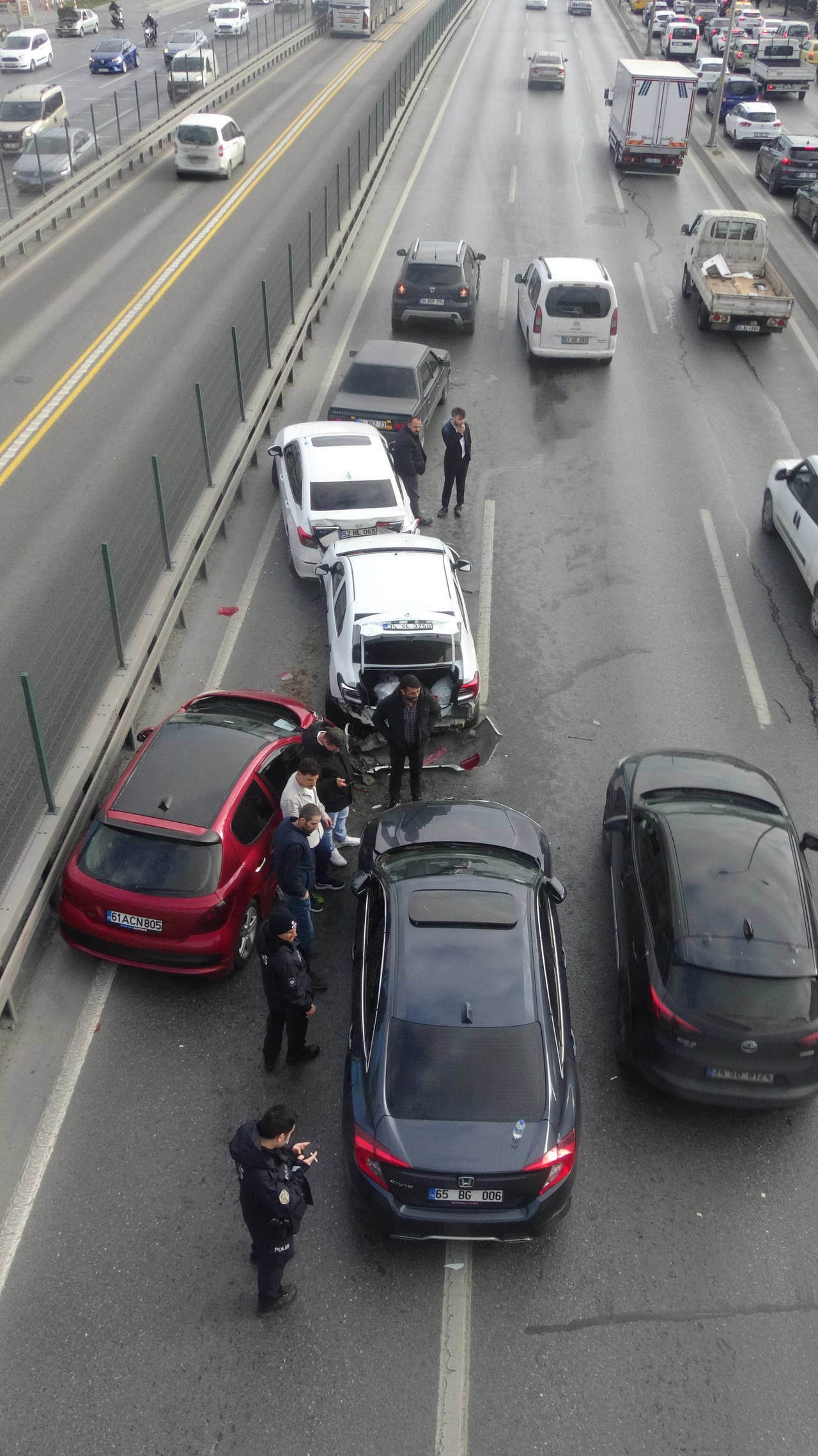 Bunun üzerine arkasından gelen araçlar, duramayarak birbirlerine çarptı. Zincirleme kaza nedeniyle, trafikte uzun süre aksama yaşandı.