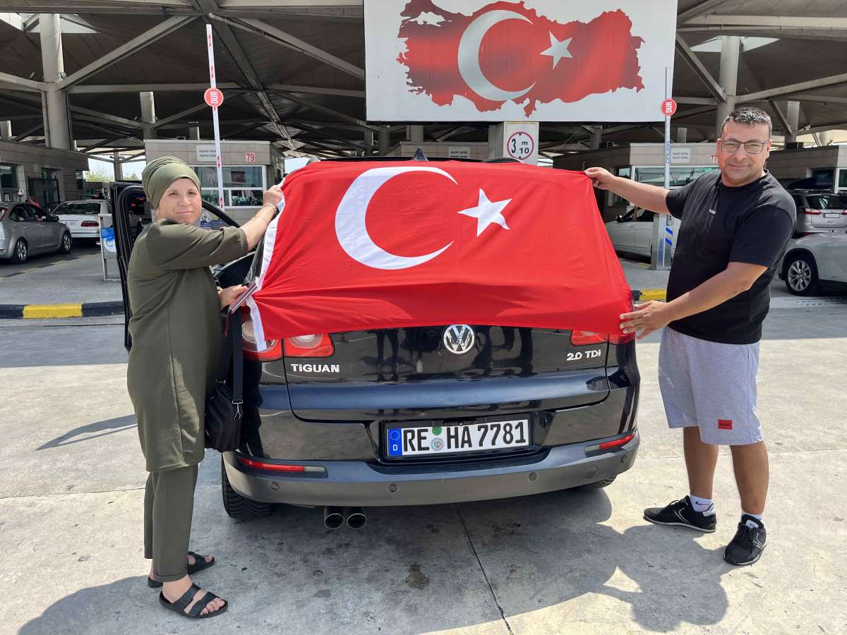 Almanya'dan gelen Adnan Erdoğan da Kapıkule Sınır Kapısı'nda eşiyle birlikte Türk bayrağı açarak memlekete gelişini kutladı.