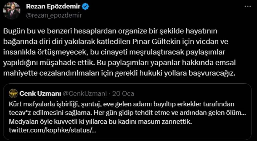 Gültekin ailesinin avukatı Rezan Epözdemir’den açıklama geldi.