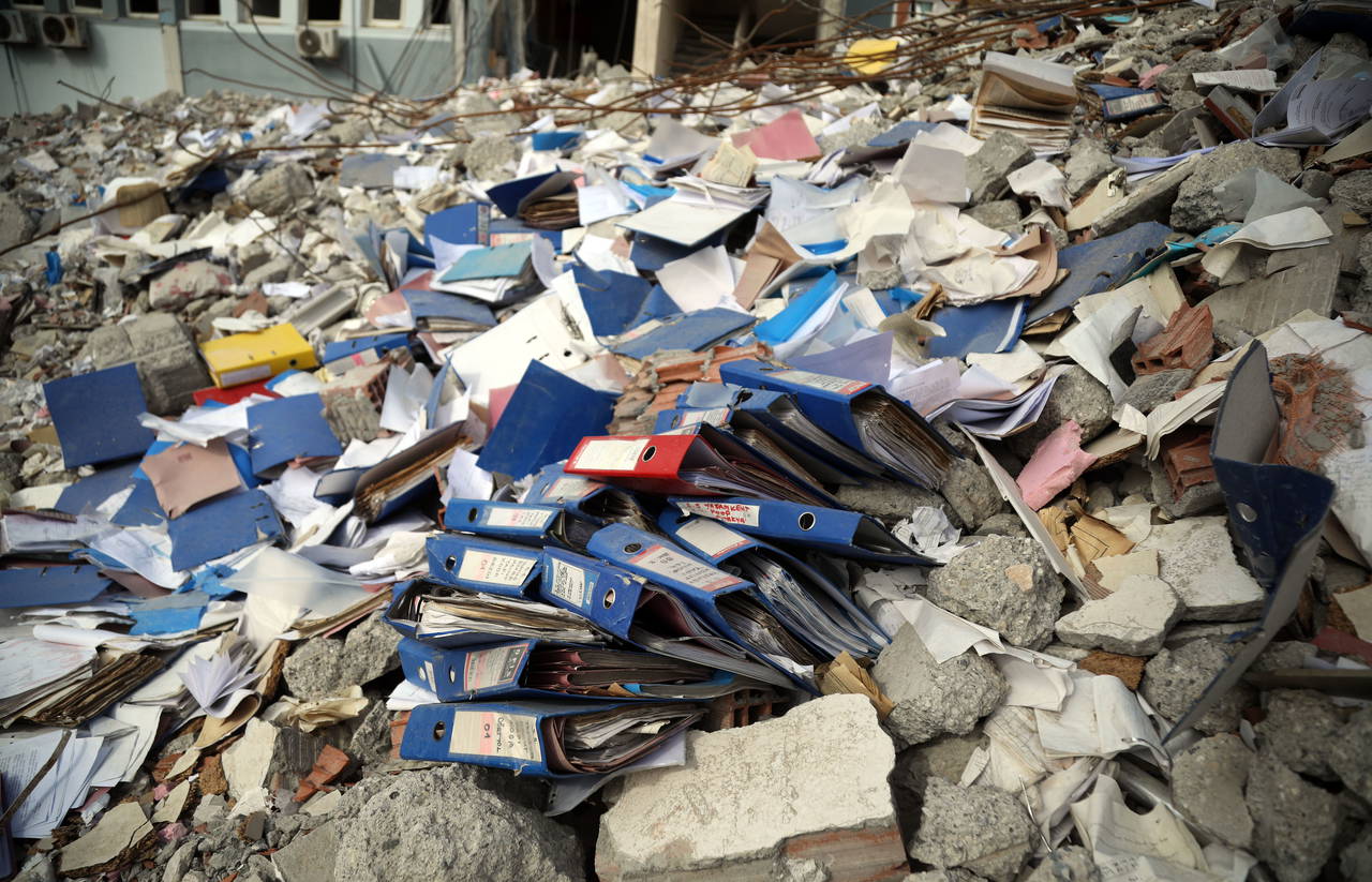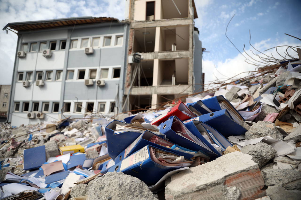 Meşe, Hatay il merkezi ile ilçelerindeki yapı denetim raporları, beton tahlilleri, depreme dayanıklılık testlerinin de aralarında olduğu birçok resmi belgeyi enkazdan toplayıp, savcılığa teslim ediyor.