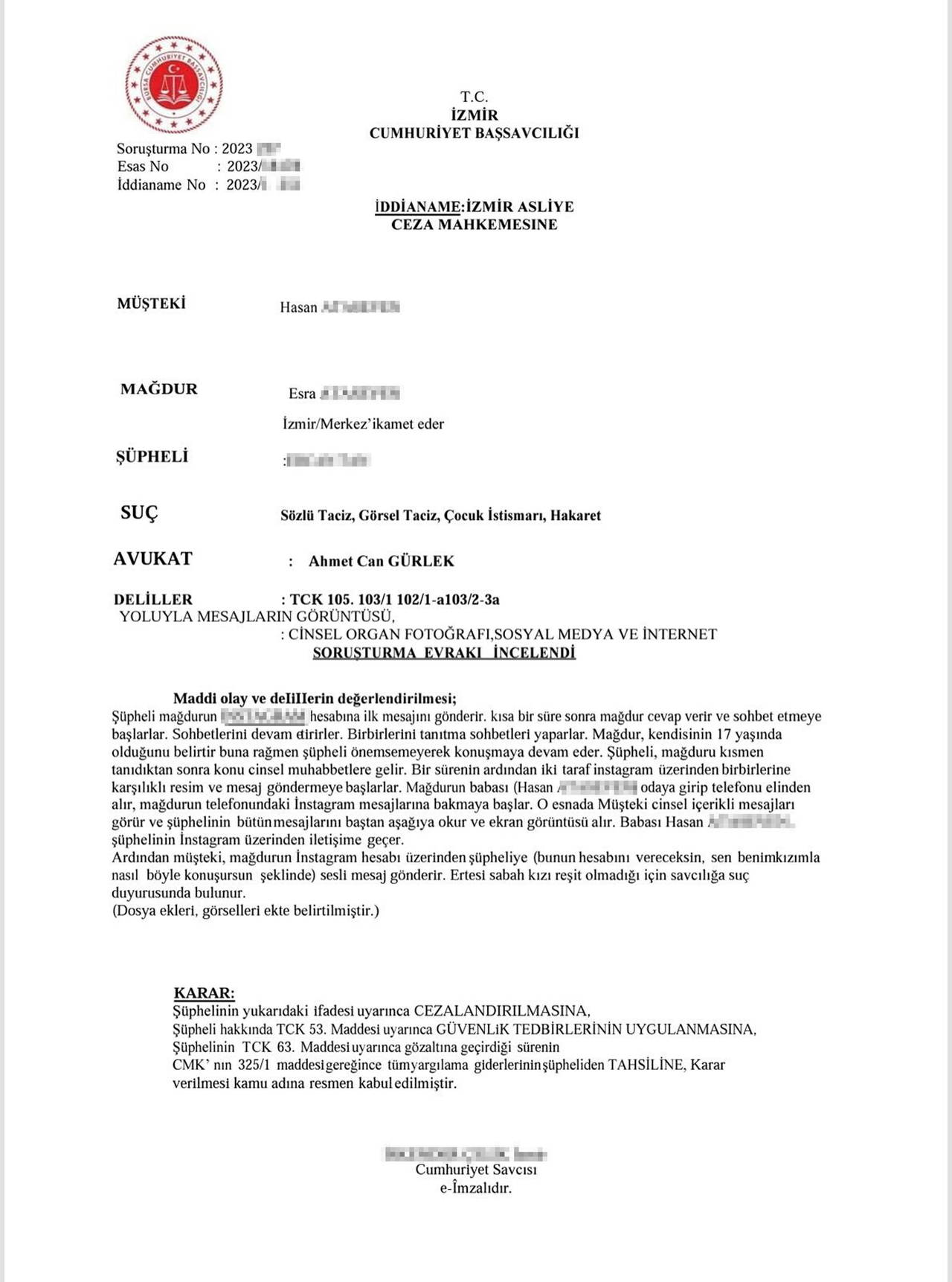 Savcılığa gidip, şüpheliler hakkında suç duyurusunda bulunan Gürlek, durumu anlatarak, "Önce bir sosyal medya platformunda sahte hesap açıyorlar. Özellikle kolluk görevlileriyle konuşmaya başlıyorlar. Konuşma cinsel içerikli olarak devam ettikten sonra çıplak fotoğraflar gönderiliyor. Sonrasında ise dolandırıcılar, 'Seninle ilişkimi ailem öğrendi. Babam çok sinirlendi. Ben sana yalan söyledim. 17 yaşındayım' yazan bir mesaj geliyor. Birkaç gün sonra ise mağdur kişiyi bir numara arıyor ve adımı kullanıp, avukat olduğunu söylüyor. Tüm bilgilerimi baro levhasından almışlar. Adımı kullanan kişi, mağdur hakkında 'Çocuğa cinsel istismar' suçundan soruşturma açıldığını ve uzlaştırmacı olarak savcılık tarafından görevlendirildiğini söylüyor. Bunun için savcılığın belirlediği tutarı yatırması gerektiğini söylüyor. Tutar olarak da 47 ile 53 bin arasında para isteniyor. Parayı banka hesabına yatırmalarını istiyorlar" ifadelerini kullandı.