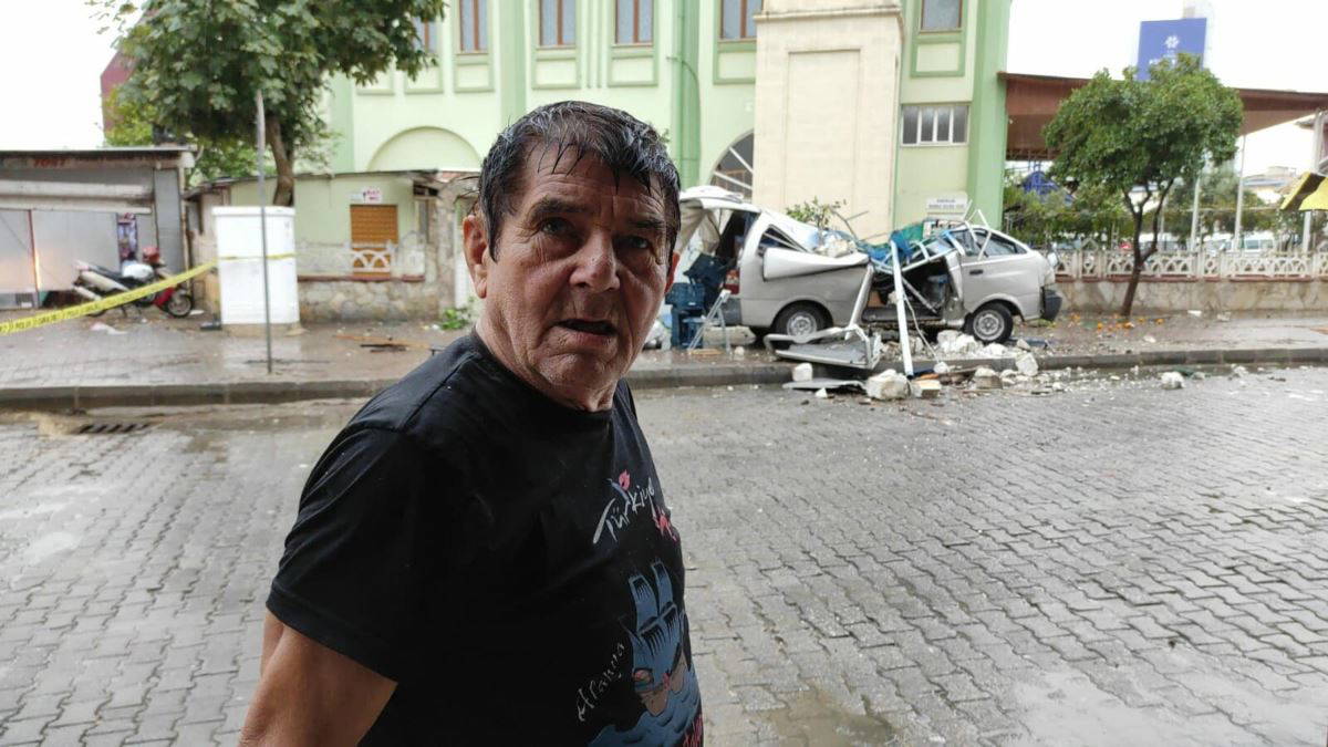 Ölümden son anda kurtulan İşçen, "Bir anda yağmur yağdı, ben de o sırada tezgahtaki malımı topluyordum. Malı arabaya koydum, kasaları koyarken, minarenin uçan parçaları üzerime geldi. Canımı kurtarmak için arkaya kaçtım. 26 yıldan beri burada pantolon satıyorum. İlk defa böyle bir şey yaşadım" dedi.