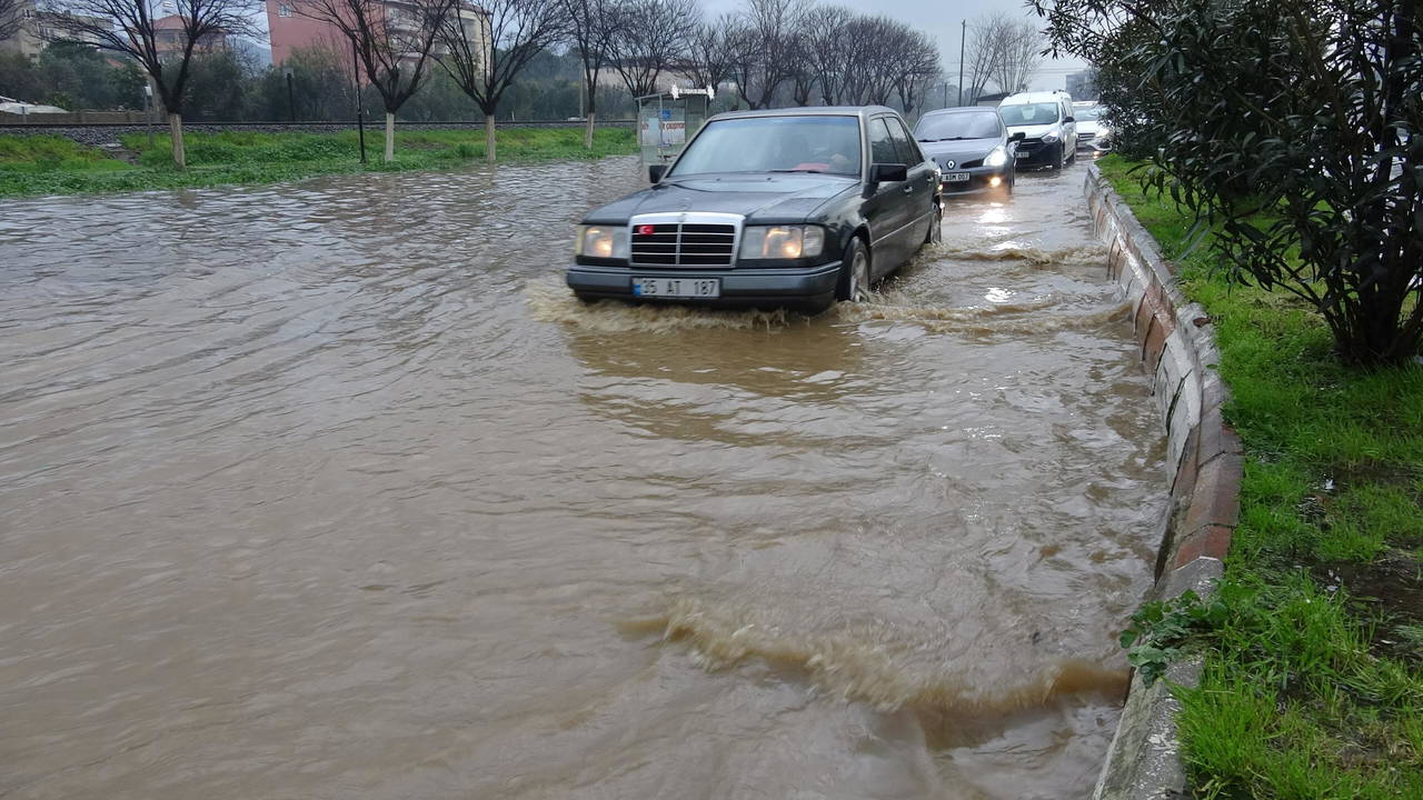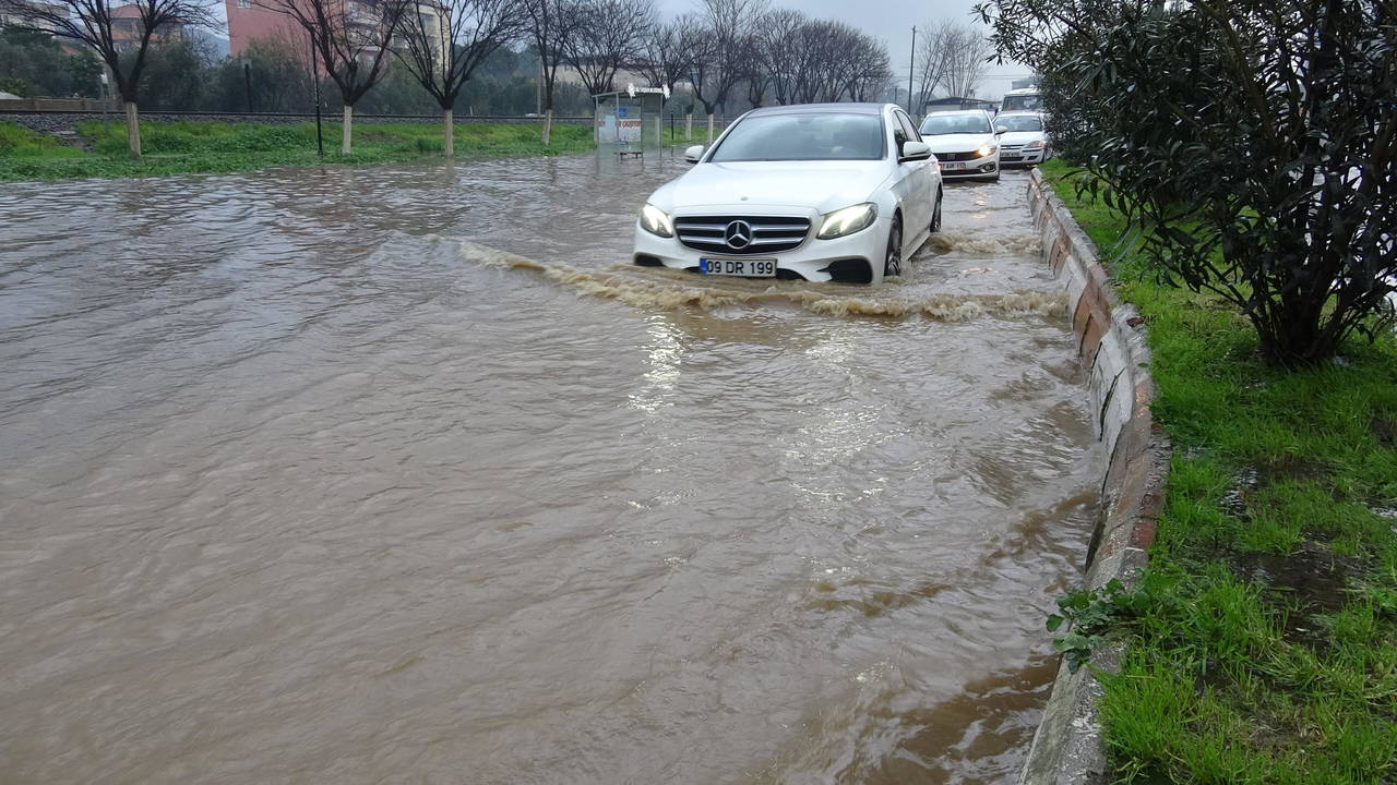 Aydın'da sabah saatlerinden itibaren sağanak etkili oldu. İncirliova ilçesinde cadde ve sokaklar yağmur suyuyla doldu.