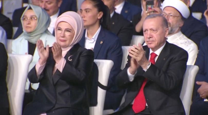 Azerin'in bozkurt hareketi ile parçasını bitirmesi sonrası AKP'li Cumhurbaşkanı Recep Tayyip Erdoğan ve eşi Emine Erdoğan da alkışlayarak karşılık verdi.